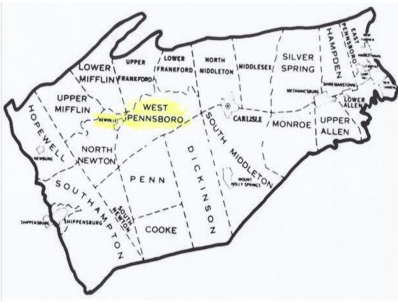 (a) Cumberland County w/West Pennsboro Twp and Newville highlighted