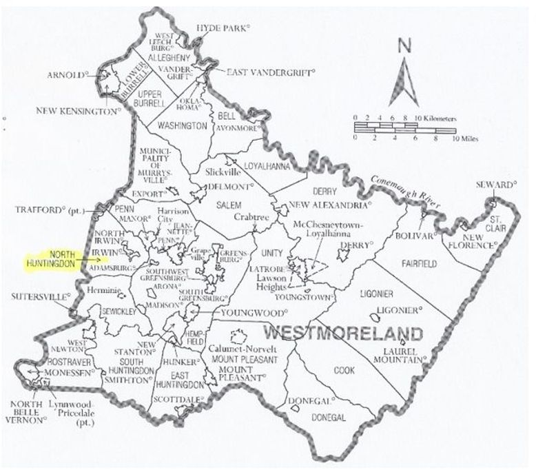 (b) Westmoreland County w/North Huntingdon Twp highlighted